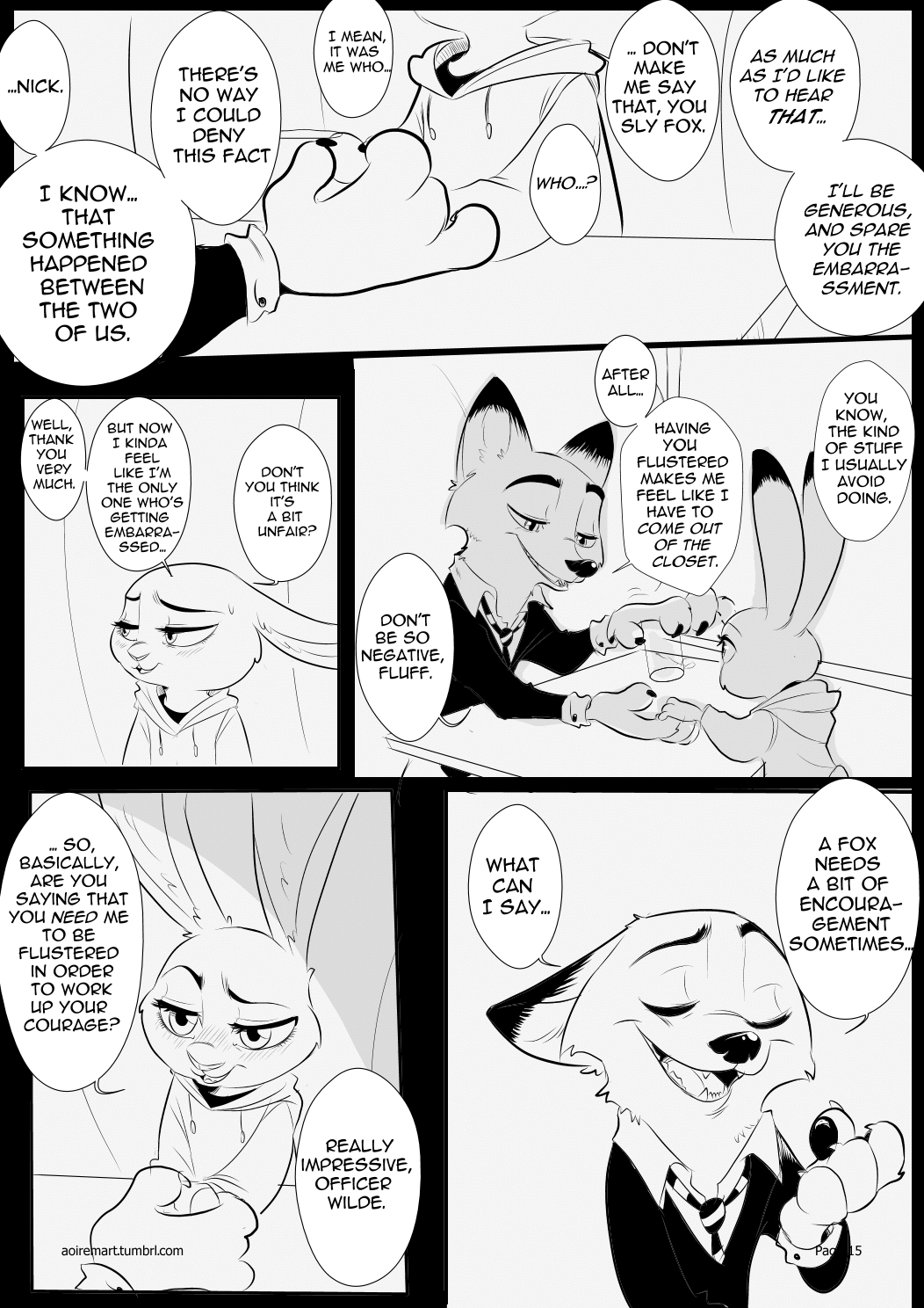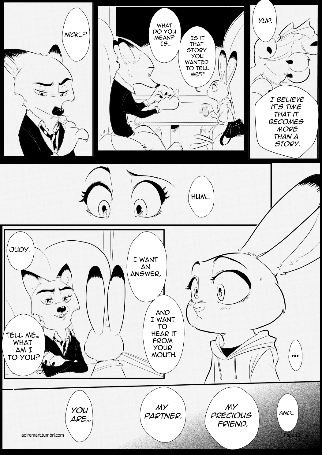Ultimately, I have the greatest admiration for Rem289's art. She is, in my opinion, one of the best Zooptopia fan-artists that I've seen. However, AoiRem2816's combined skill of telling a story longer than a few pages really needs work. "Black-Jack" was a jumbled tale with a narrative that went all over the place and came to an awkward ending that felt like the story was just sorta abandoned. Nick and Judy kissing wasn't enough, for me, to make the ending feel satisfying.