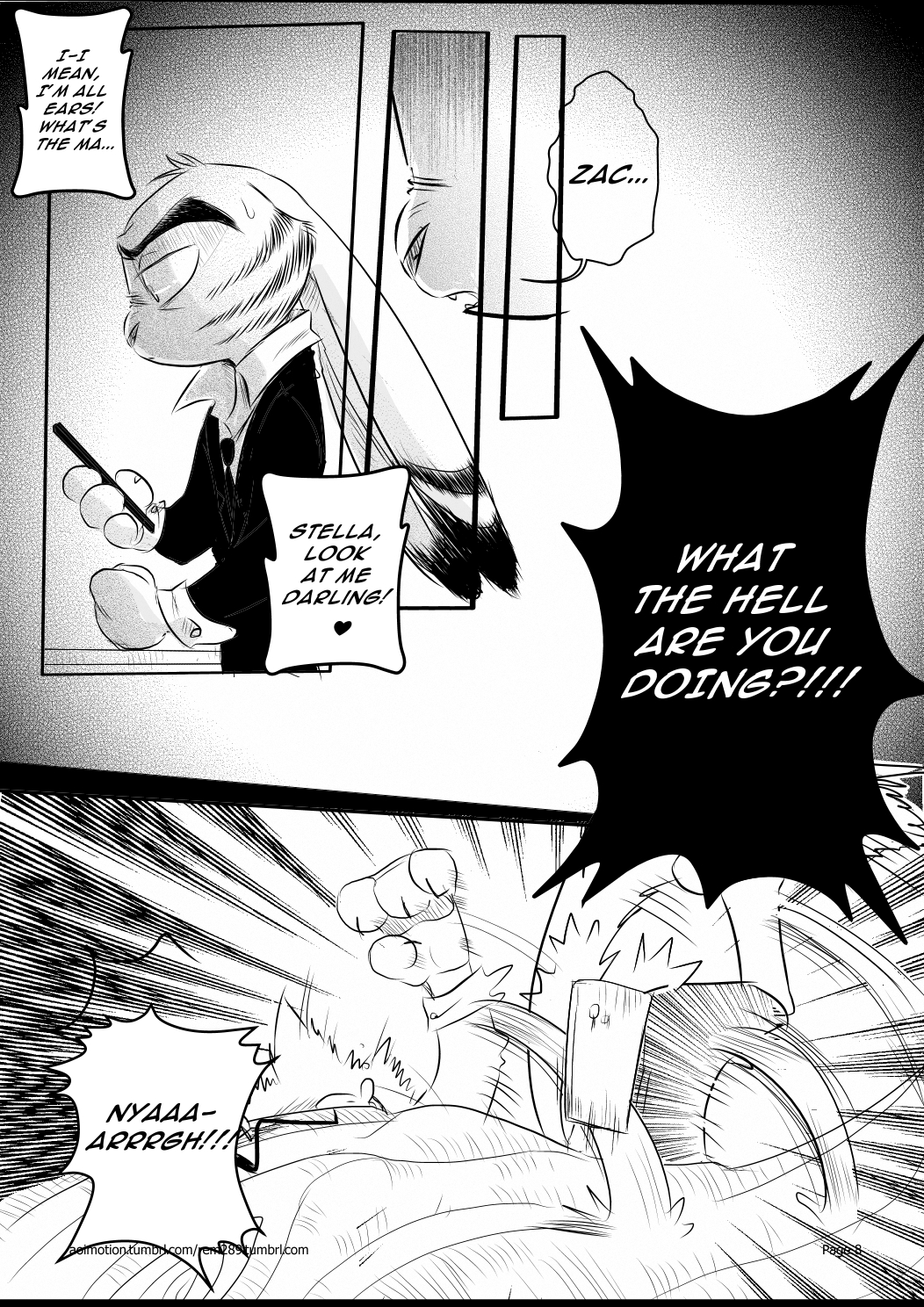 In chapter seven, we meet a new character named Zac, a cat who has such a nice and cute flirtatious attitude with a great stealth and comical personality! We also see Cynthia at Jack’s apartment, along with Zac; who was trying to check out the apartment for Jack. However, Cynthia follows along and has made a little mini investigation on Jack trying to figure out why Jack was sent on a mission alone. (Seriously, you don’t want to mess with her.)